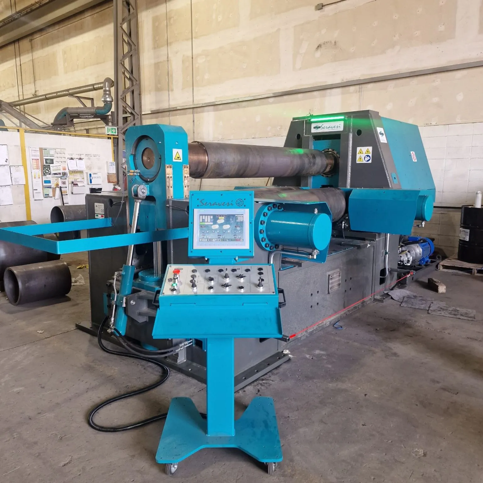 La macchina è dotata di un rullo superiore intercambiabile, diametro 350 mm (13,7"), in grado di calandrare tubi con diametro a partire da 402 mm (15,8").