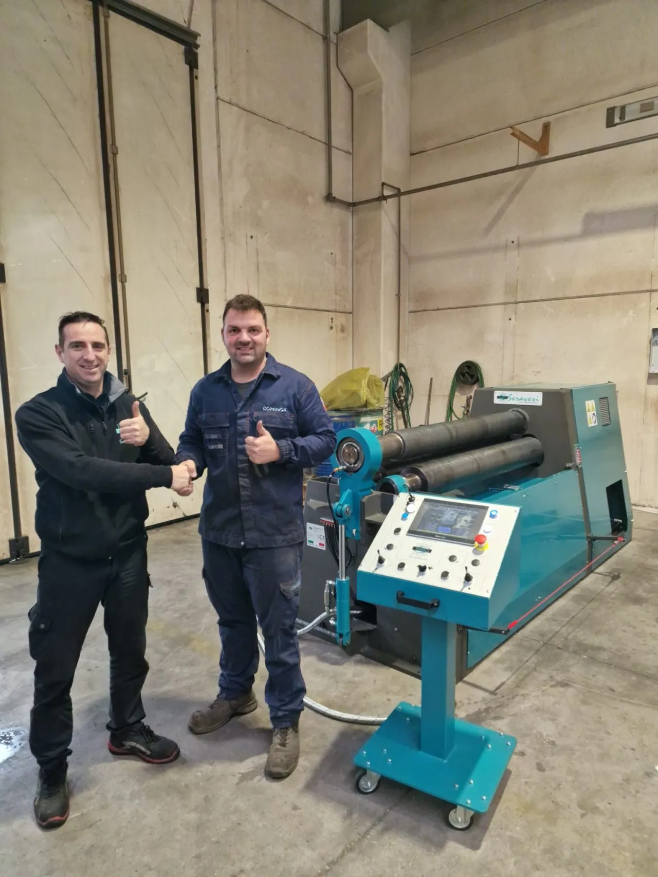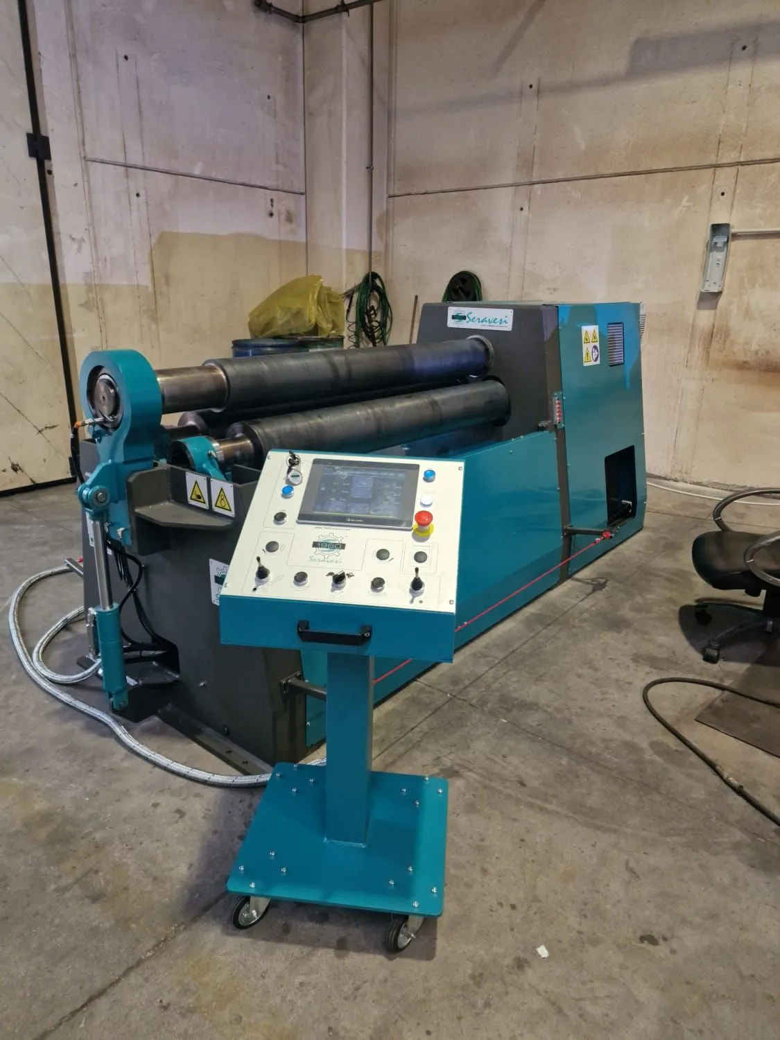 Dopo meno di un anno, il nostro cliente ha ricevuto la sua seconda calandra per lamiera di 1960 Seravesi. La calandra è per la produzione di coni con spessore fino a 8 mm (3/8") su una larghezza di 1600 mm (63") con un diametro minimo di 215 mm (8.5"). Il dispositivo conico è retrattile idraulicamente, per non interferire durante la laminazione cilindrica.